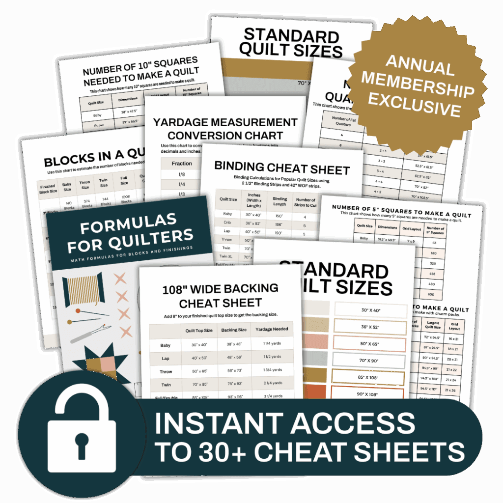 Unlock the Cheat Sheet Vault instantly — 40+ past cheat sheets waiting for you, plus every new release added automatically all year long. It’s your personal quilting reference library that keeps growing.
